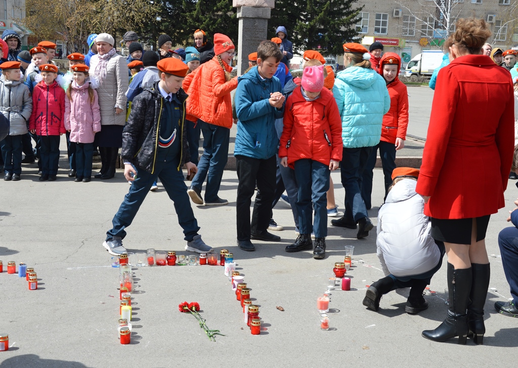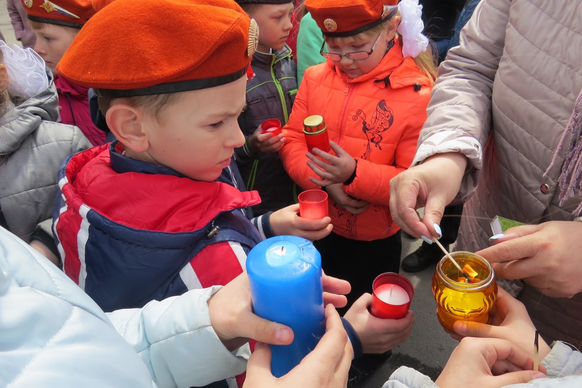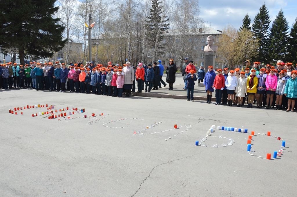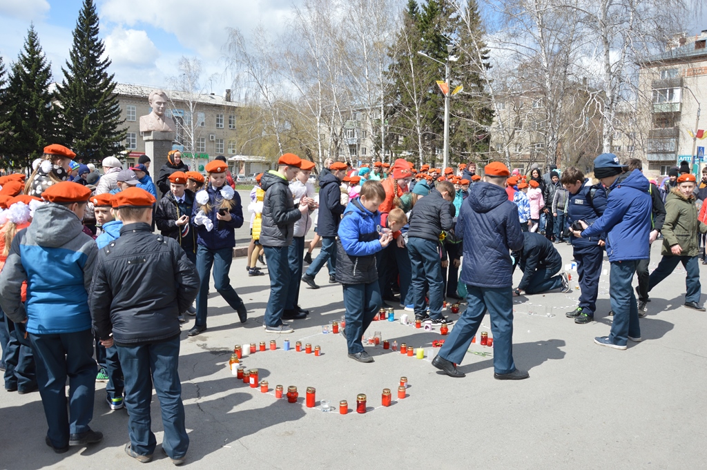 Самым ярким моментом акции стала эстафета свечей памяти, переданная старшеклассниками учащимся 1 - 9 классов, которые из зажженных свечей выложили на площади «СПАСИБО».