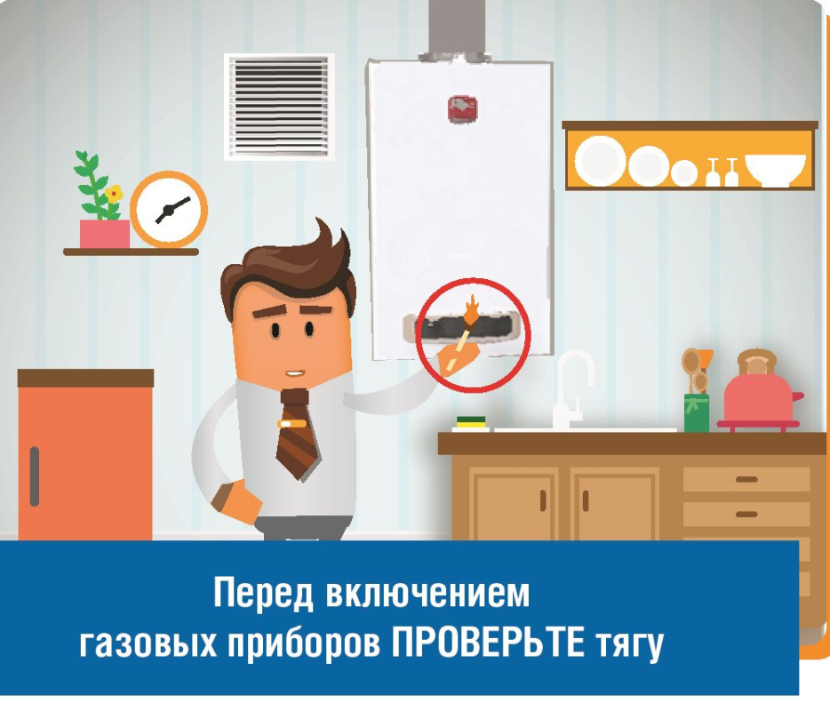 - проверять наличие тяги до включения и во время работы бытового газоиспользующего оборудования;