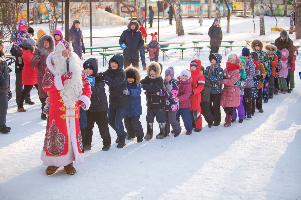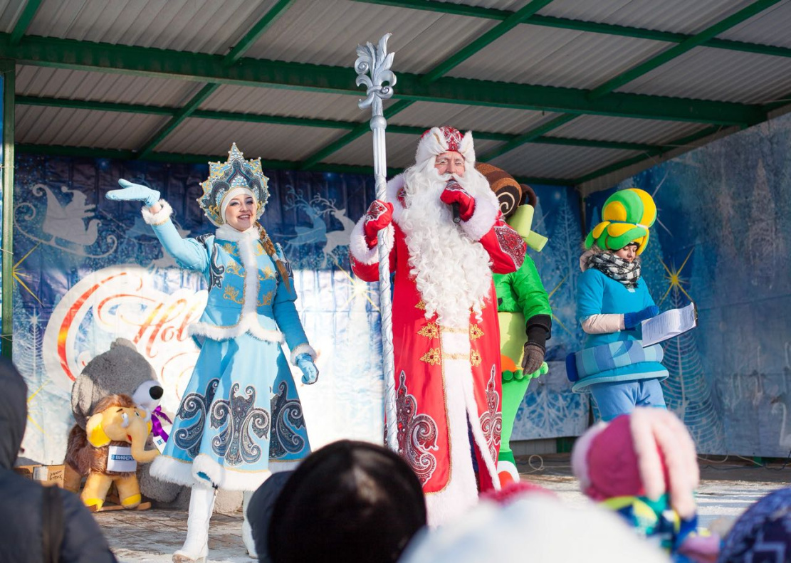 Вместе с алтайским кудесником и его помощниками ребята водили хороводы и пели добрые отечественные песни, устраивали битву снежками, а также катались на символах нынешнего года и фотографировались с любимыми персонажами.