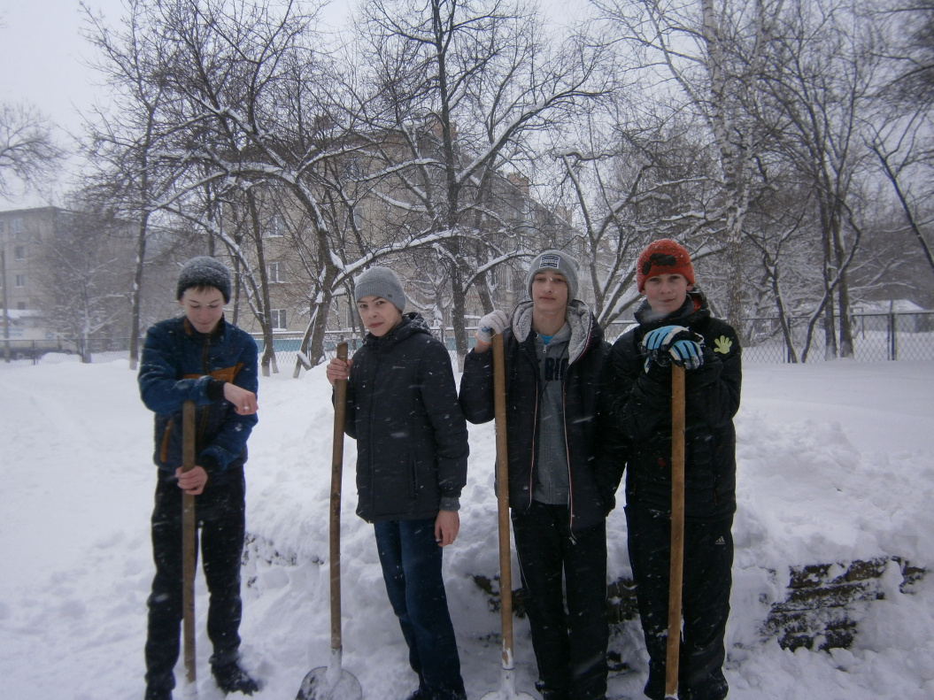 В дни школьных каникул состоялась патриотическая акция «Снежный десант». После обильных осадков ученики старших классов школы №63 в течение недели помогали с уборкой снега социально значимых учреждений в поселке Южный.