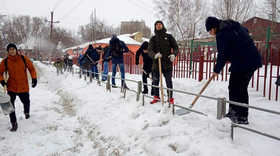 Барнаульские студенты продолжают помогать в уборке города от снега.