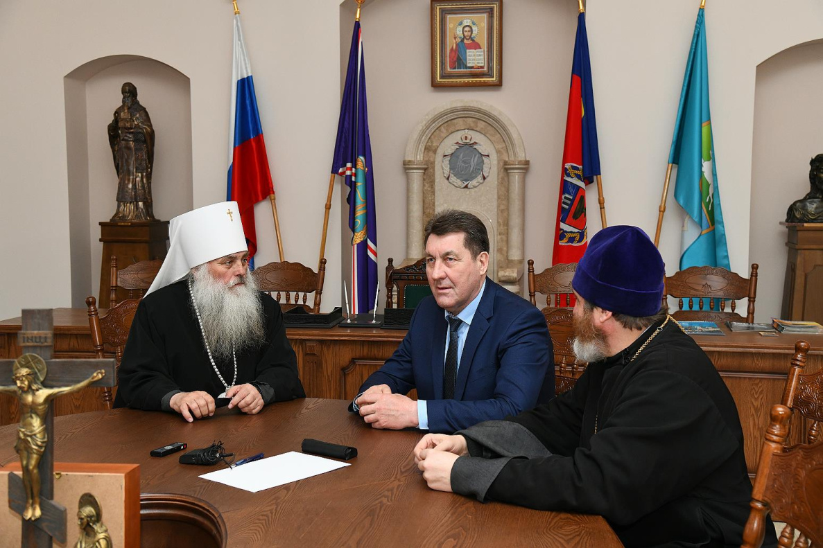 Глава города Сергей Дугин и Митрополит Барнаульский и Алтайский Сергий подвели итоги работы по передаче здания Кресто-Воздвиженской Церкви Русской Православной Церкви.