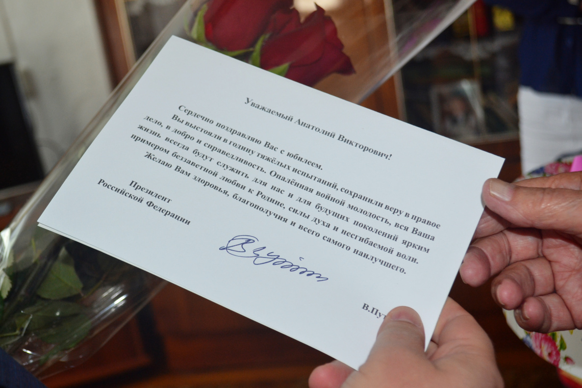 В свою очередь, Анатолий Викторович заверил, что патриотическую работу продолжит, на всех памятных мероприятиях будет, поблагодарил за поздравления и пригласил всех на свой 100-летний юбилей.