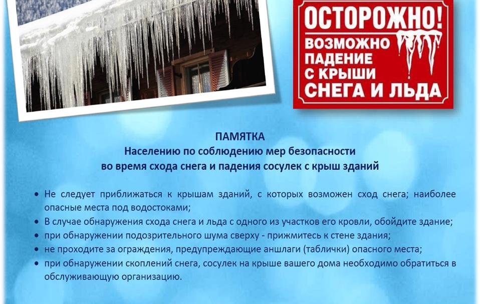 В управлении ГОЧС г.Барнаула для жителей и гостей краевой столицы подготовили памятки о мерах безопасности в период схода снега с крыш и падения сосулек.