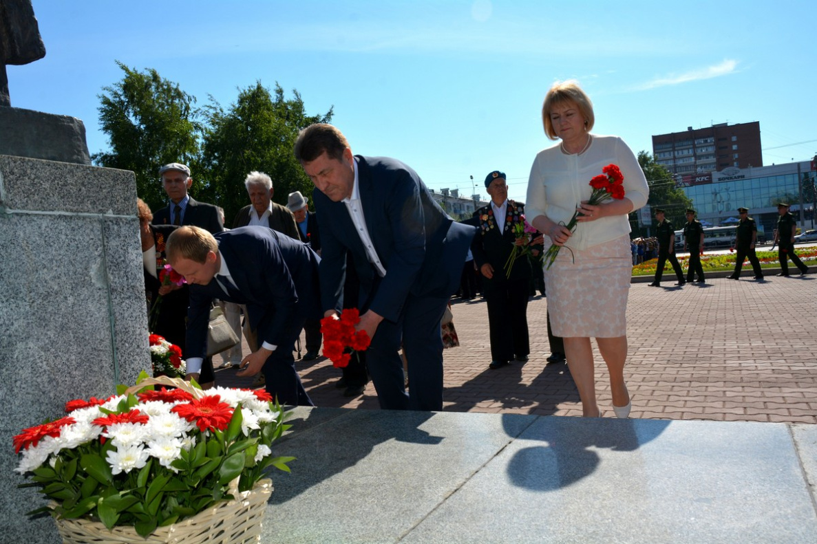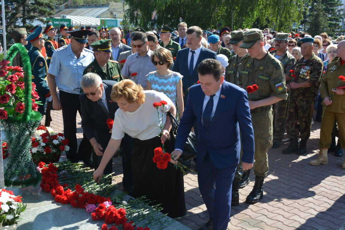 В памятном митинге и церемонии возложения цветов приняли участие врио Губернатора Алтайского края Виктор Томенко, представители Правительства Алтайского края, глава Барнаула Сергей Дугин, руководители районов Барнаула, председатель Барнаульской городской думы Галина Буевич, депутаты Государственной Думы РФ, Алтайского краевого законодательного собрания, Барнаульской городской думы, воспитанники военно-патриотических и военно-спортивных клубов, кадеты, бойцы поисковых отрядов и объединений, представители казачества, алтайские студенты, ветераны Великой Отечественной войны и «дети войны».
