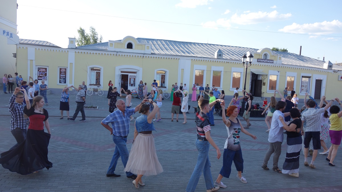 7 июня на пешеходной улице Мало-Тобольской состоялась вторая репетиция к стилизованному действу. В ней приняли участие более 60 человек. Студия старинного танца «Северная сторона» научила участников мастер-класса несложным танцам XIX века.