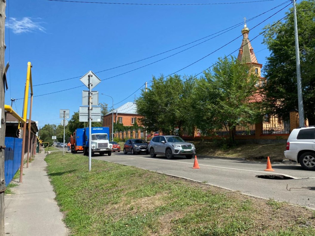 Напомним, 21 июля в районе 10 часов утра произошел провал асфальта на проезжей части по улице Аванесова. На место происшествия незамедлительно выехали представители администрации города, Центрального района, дорожные службы, полиции, Барнаульского водоканала
