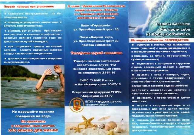 По данным управления ГОЧС города, в черте Барнаула находится 19 «диких» пляжей, которые, несмотря на запреты, традиционно посещают жители. Эти места обозначены специальными аншлагами «Купаться запрещено», а с целью контроля безопасности людей на водных объектах составлены графики регулярных рейдов. В них участвуют сотрудники районных штабов по делам ГОЧС, государственной инспекцией по маломерным судам, полиции, специалисты комиссий по делам несовершеннолетних и защите их прав. С любителями пляжного отдыха в не предназначенных для этого местах проводят разъяснительные беседы, им выдают памятки о том, как вести себя на воде и как оказать первую помощь утопающему.