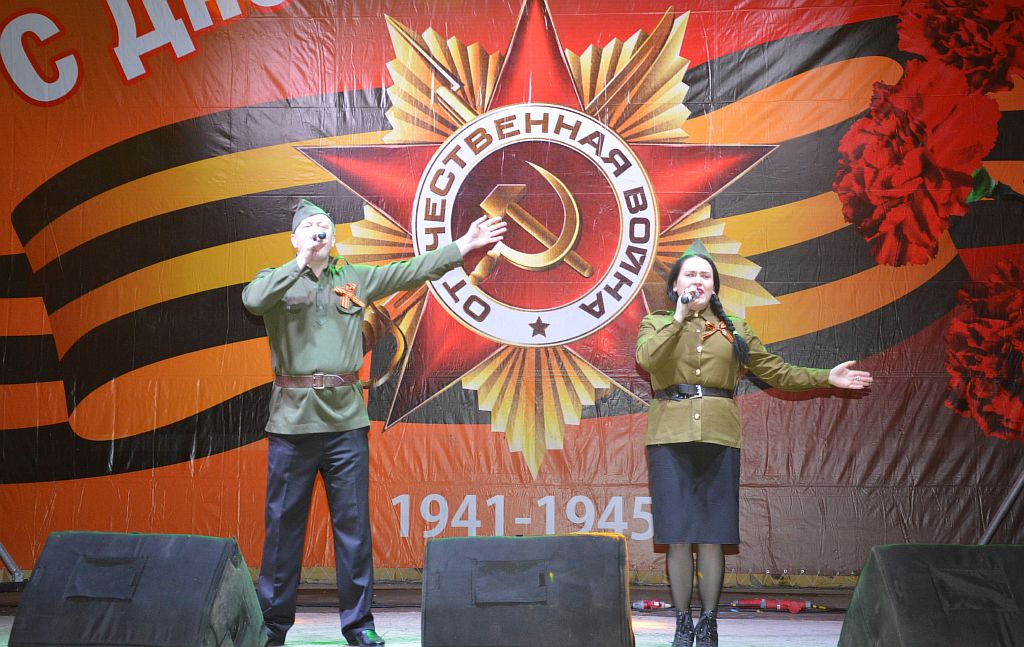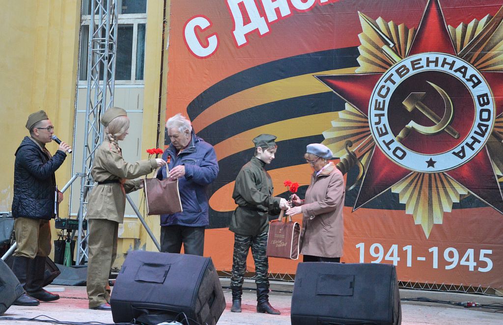 Со словами поздравления на главной районной праздничной сцене выступили виновники торжества – ветераны Великой Отечественной войны Петр Бобков и Матрена Андрейченко.