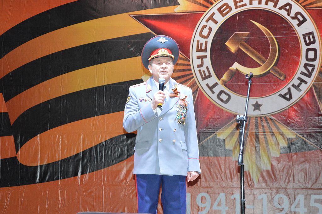 В завершение праздника, перед красочным фейерверком, со словами поздравления выступил Вячеслав Новиков, генерал-майор полиции в отставке, участник двух локальных войн, глава администрации Октябрьского района: