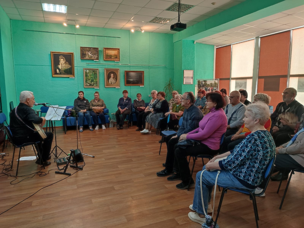 Участники мероприятия погрузились в чарующие звуки гитары и душевные песни в исполнении барда - Сергея Свирина.