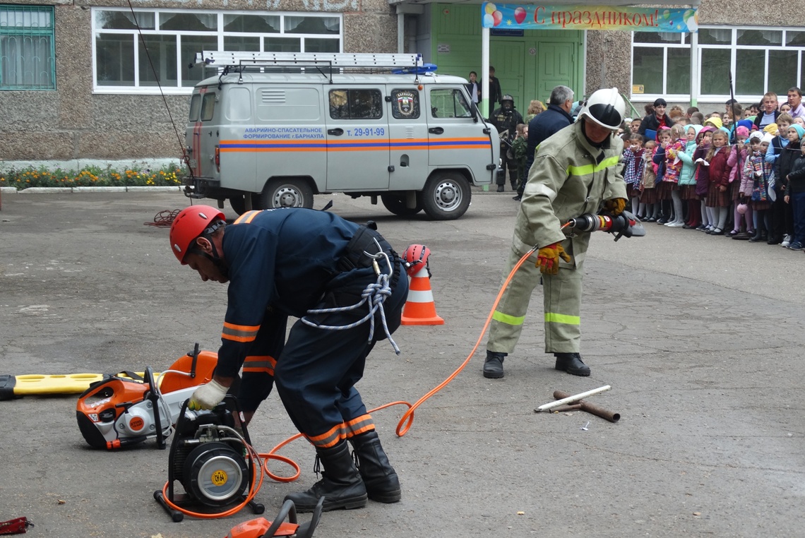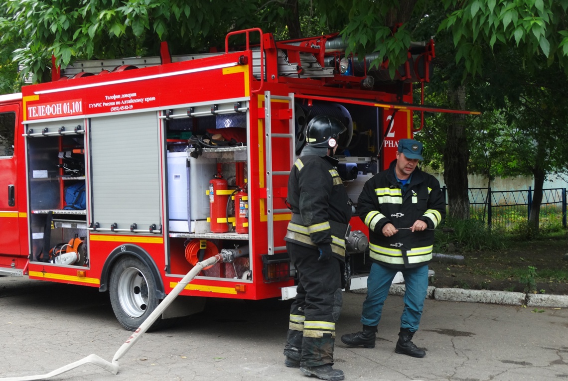 Далее проведено практическое занятие с сотрудниками аварийно-спасательного формирования МКУ «УГОЧС г.Барнаула» по видам пожаротушения, а сотрудниками 2 пожарной части Федеральной противопожарной службы по Алтайскому краю – продемонстрирована спасательная техника и оборудование пожаротушения.