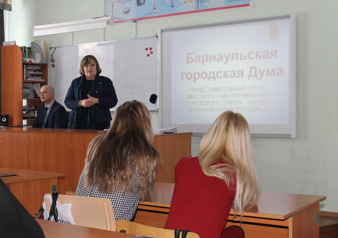 Так, ребят из школ №84 и 51 посетил заместитель председателя Думы Сергей Струченко, в пригород, к ученикам 98-й (Власиха), на обсуждения пришел заместитель председателя комитета по бюджету, налогам и финансам Юрий Ряполов, в 117-й побывал Евгений Кулешов, в 128-й – Инна Борисенко, в 118-й – Лариса Белькова, а в 81-й – председатель комитета по социальной политике Марина Ермоленко.