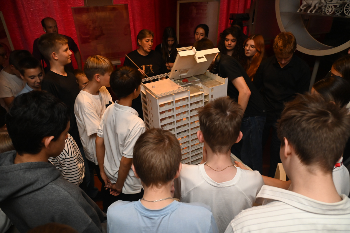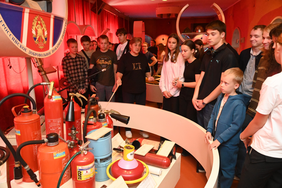 Марина Рябушкина, экскурсовод Центра противопожарной пропаганды и общественных связей, рассказала ребятам о советских и современных средствах пожаротушения, о специфике тушения разных видов пожаров. Для наглядности в экспозиции представлены макеты объектов, которые подсвечиваются красным светом, изображая чрезвычайную ситуацию. На макете 14-этажного жилого дома не просто показаны все эвакуационные выходы, но и открываются детали фасада, чтобы можно было рассмотреть, как устроена система противопожарной безопасности внутри дома.