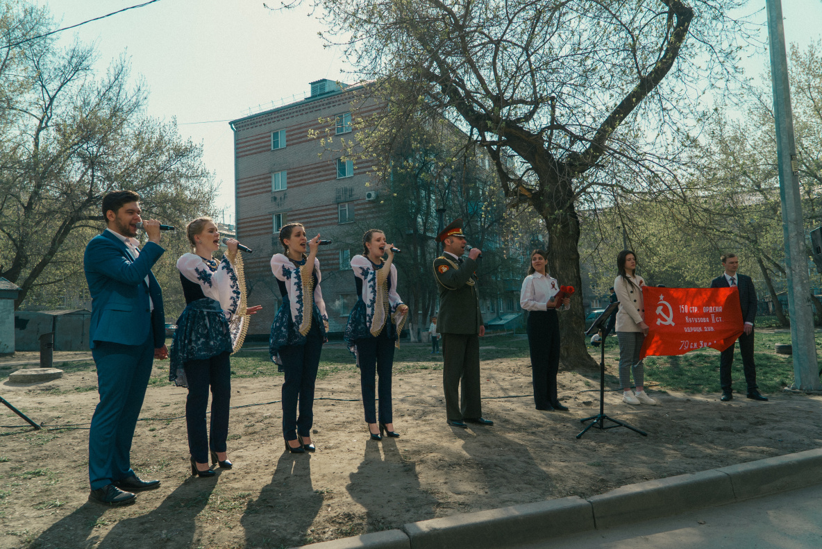 Фронтовые бригады сегодня, 8 мая, выступили у домов ветеранов.