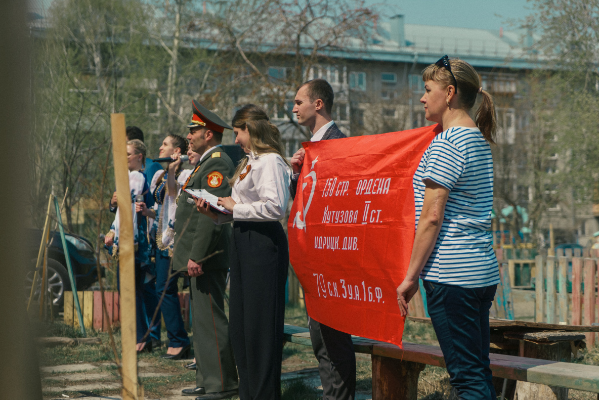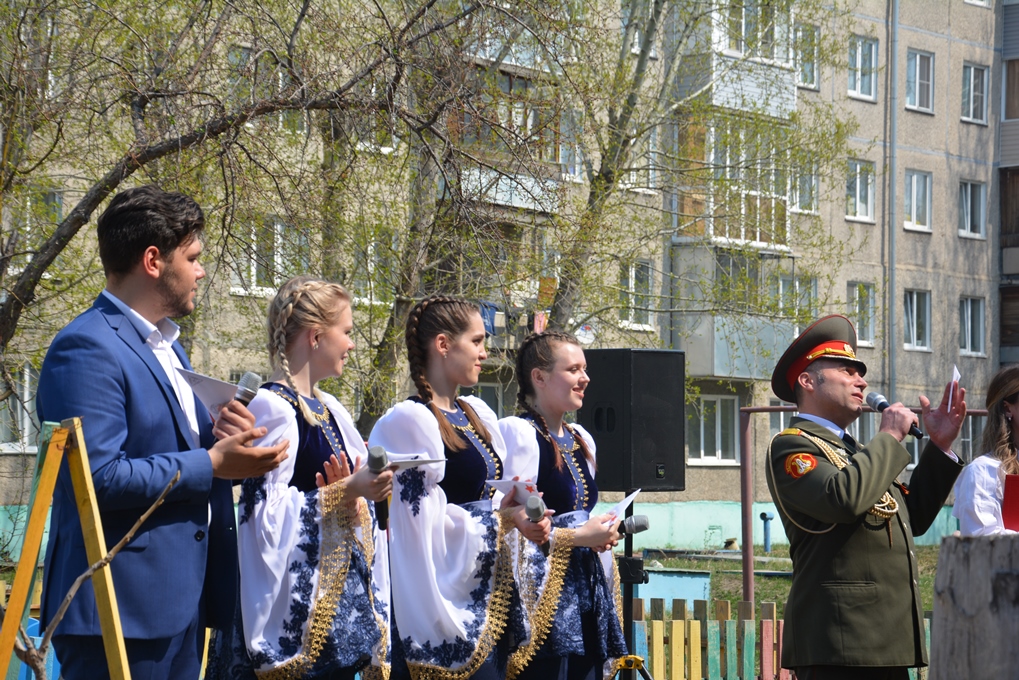 В Центральном районе Барнаула также прошли концерты во дворах. Дмитрий Бурнышев родился 24 декабря 1927 года в Пермской области, в многодетной семье. Когда началась война, на фронт забрали отца, с войны он не вернулся. Повестка на фронт пришла в ноябре 1944 года, когда до 17-летия оставался ровно месяц. Исполнили песни военных лет и для Андрея Юракова. Андрей Сергеевич родился 1 сентября 1927 года. В пятнадцать лет, когда его отец ушел на фронт, Андрей начал работать объездчиком в Ракитовском лесхозе, в 1944 году ушёл служить в ряды Красной Армии, прослужил до 1951 года.