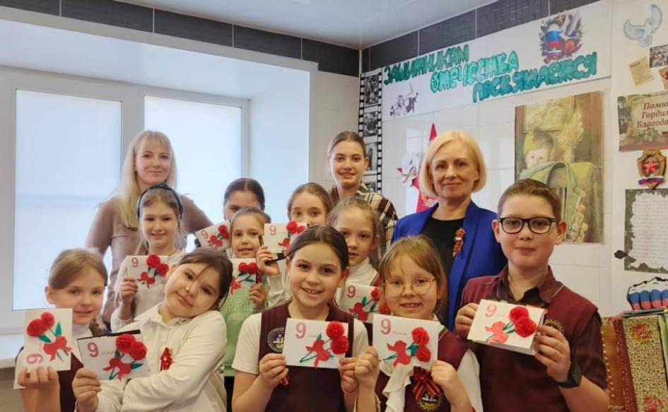 Для юных жителей микрорайона «Поток» провели мастер-класс по изготовлению открытки ко Дню Победы