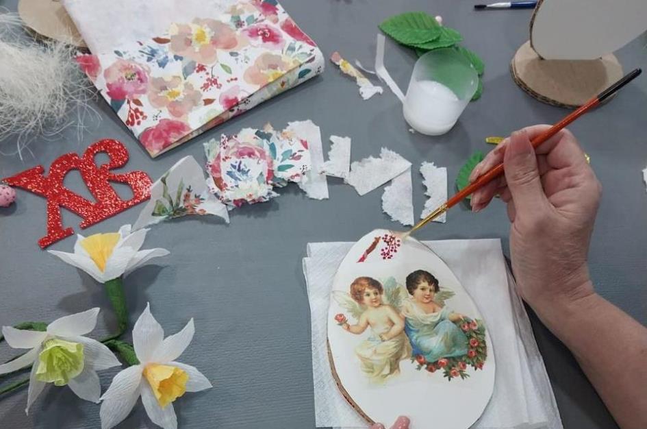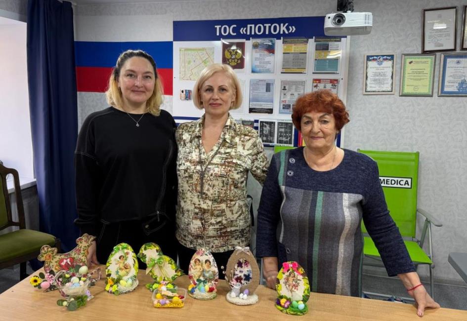 Накануне, 15 апреля, в помещении Совета ТОС микрорайона «Поток» (ул. Эмилии Алексеевой, 13А) состоялся мастер-класс по изготовлению пасхальной композиции в технике декупаж.