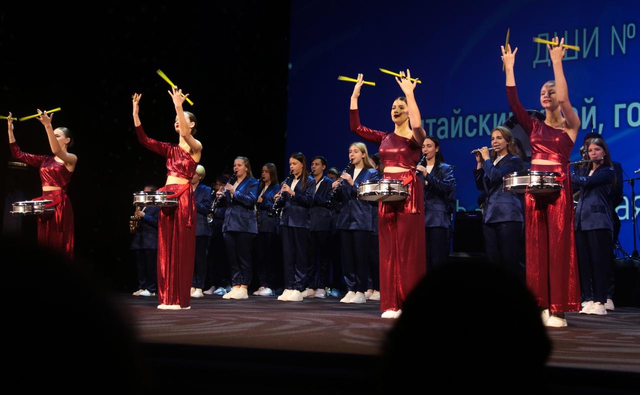 В гала-концерте юные музыканты сыграли два произведения из конкурсной программы и показали новый плац-концерт с участием мажореток.