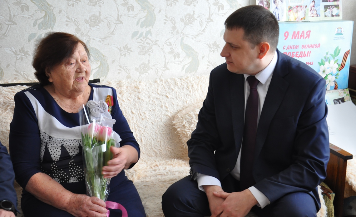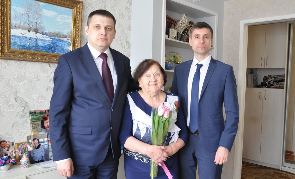 Глава администрации Ленинского района Евгений Авраменко накануне Международного женского дня вручил юбилейную медаль труженице тыла Алевтине Чунаревой