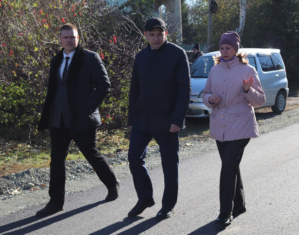 Евгений Авраменко вместе с главой Научногородокской сельской администрации Юрием Зеленским, главным специалистом отдела дорожного хозяйства профильного комитета администрации города Никитой Лариным, представителем подрядной организации и общественниками оценили качество выполненных работ по строительству дорожного полотна на трех участках в п.Казенная Заимка и одном в п.Научный Городок.