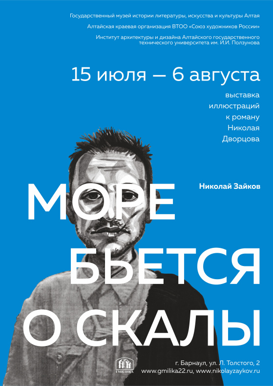 Работу над иллюстрациями к роману «Море бьется о скалы» Николай Зайков посвящает памяти своего коллеги – Аркадия Казанцева, чью роль в современной книжной графике Алтая переоценить невозможно.
