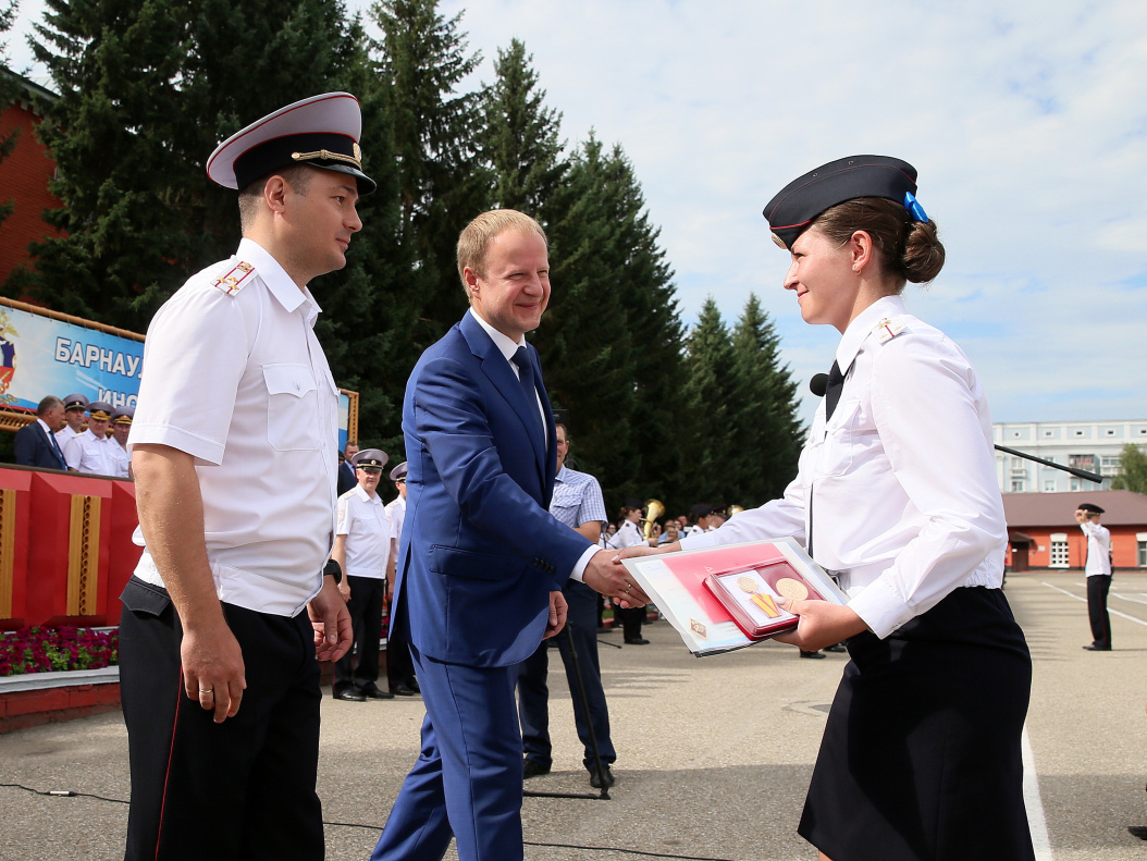 Также Губернатор края Виктор Томенко вместе с начальником института полковником полиции Дмитрием Симоненко вручил лучшим выпускникам памятные золотые медали за отличное окончание Барнаульского юридического института МВД России.