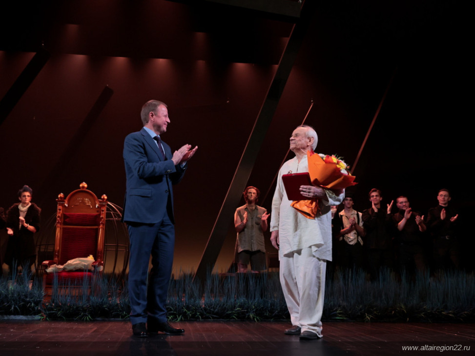 На премьере «Короля Лира» побывал Губернатор Виктор Томенко. После спектакля глава региона вручил Георгию Тихоновичу высокую краевую награду - орден «За заслуги перед Алтайским краем» первой степени.