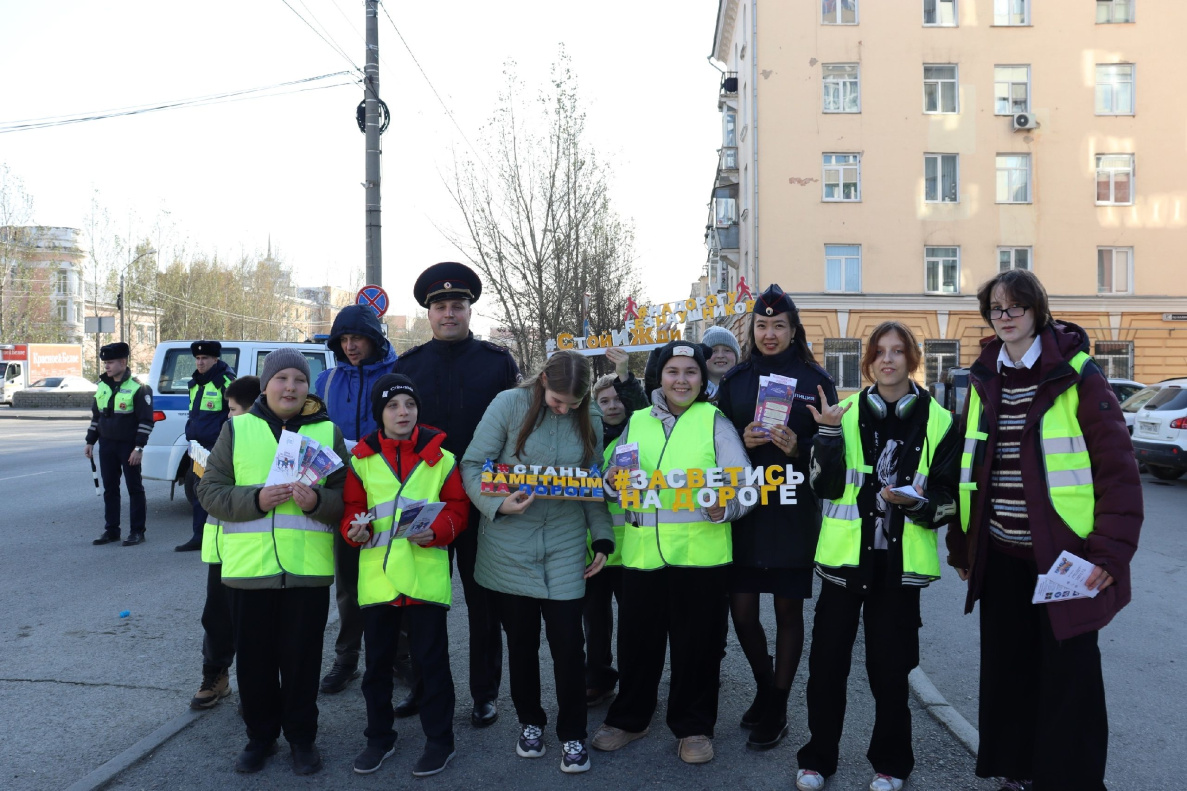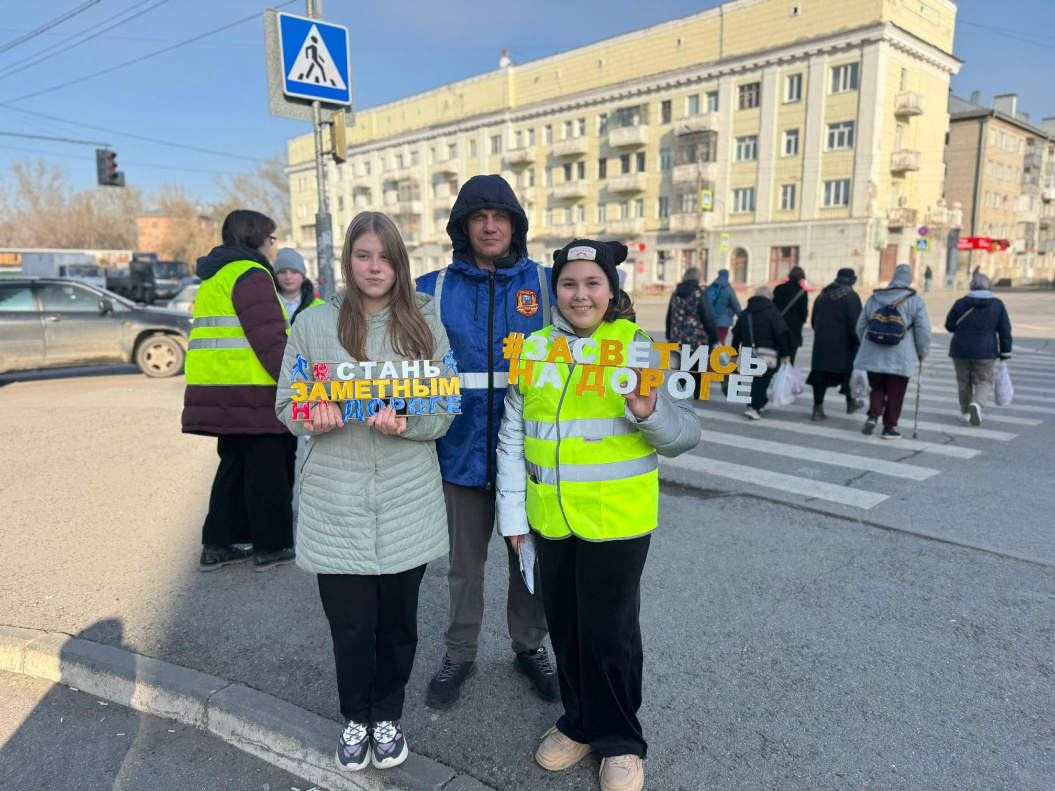 Затем школьники совместно с Народной дружиной «Барнаульская» приняли участие в акции «Засветись», выйдя на наиболее интенсивный перекресток города. Они обратились к пешеходам, напоминая о правилах безопасного перехода проезжей части и рекомендуя использовать световозвращающие элементы на одежде в темное время суток и в условиях недостаточной видимости.