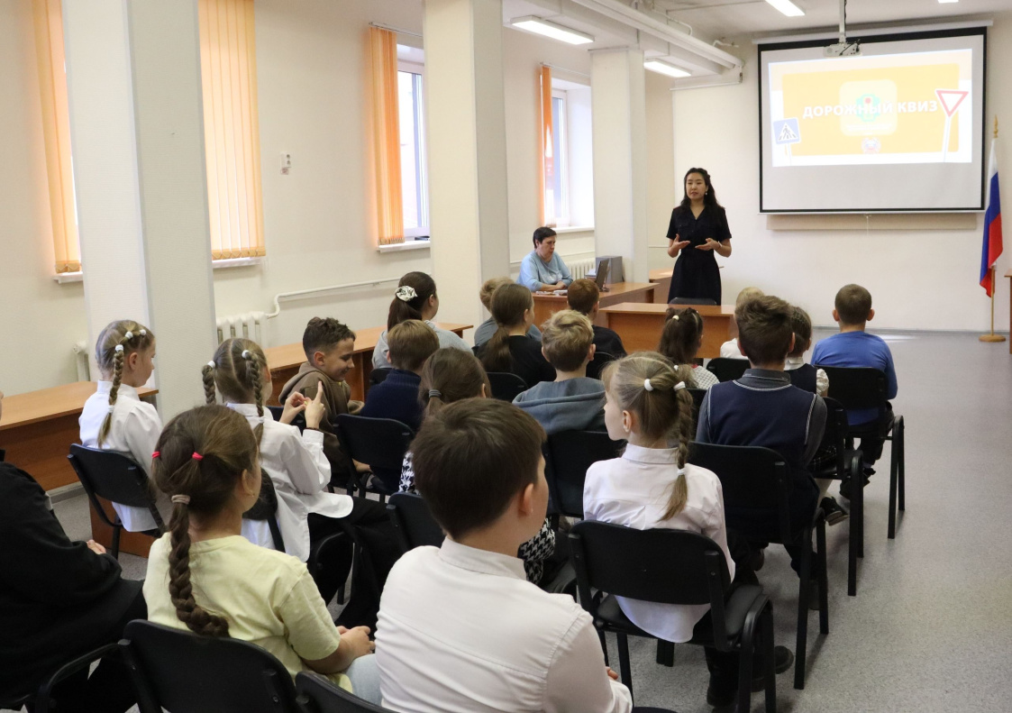 С учащимися также была проведена интерактивная игра «Дорожный квиз», в ходе которой ребята активно отвечали на вопросы по безопасности дорожного движения, разгадывали тематические загадки и ребусы.