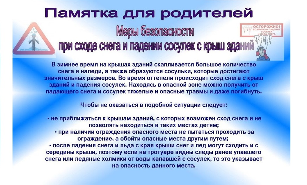 Также не следует оставлять автомобили вблизи зданий, на карнизах которых образовались сосульки и навис снег. Если ваш автомобиль поврежден, необходимо вызвать сотрудников ГИБДД и составить акт, который будет служить доказательством того, что имуществу причинен вред. Если из-за падения с крыши сосульки или снега пострадал человек, необходимо незамедлительно вызвать скорую помощь.