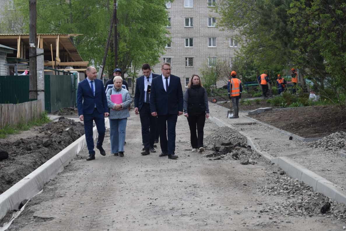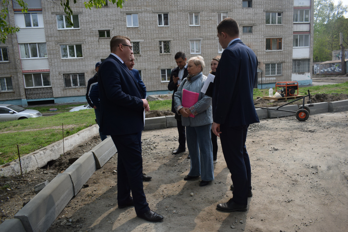 Ход благоустройства двора в рамках нацпроекта «Жилье и городская среда» по ул. 50 лет СССР, 15 проинспектировали глава администрации района и депутаты городской Думы. 16 мая глава администрации Денис Летягин, депутаты Барнаульской городской Думы Сергей Струченко и Дмитрий Мавлютов встретились с представителями подрядной организации для обсуждения хода благоустройства.