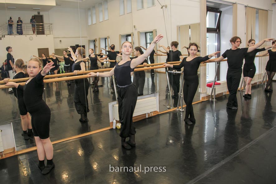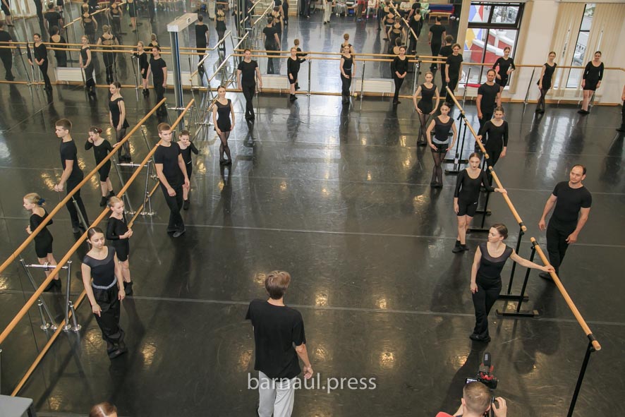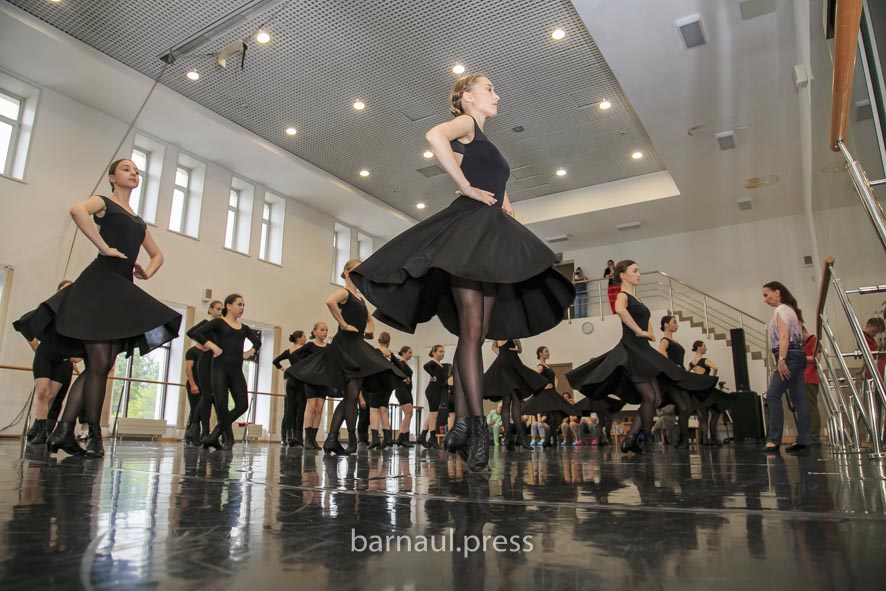 Специально для хореографического коллектива "Каблучок" из Донецка артисты из Государственного ансамбля песни и танца «Алтай» провели показательные выступления. Юные и взрослые танцоры стали участниками полноценной полуторачасовой тренировки в репетиционном зале.