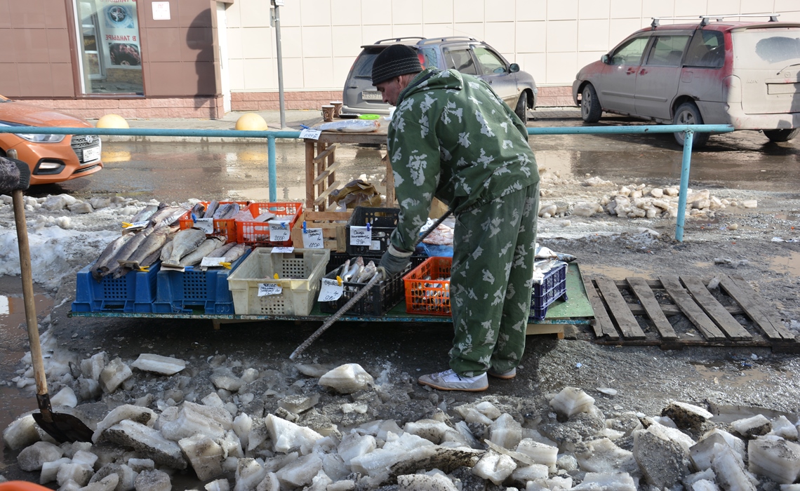 Интересно, что несмотря на откровенную антисанитарию, покупателей не пугают ни дворники, отдалбливающие лед у «прилавков», ни даже расположенная рядом контейнерная площадка с мусором, не говоря уже об отсутствии у продавцов документов на продукцию и санитарных книжек»