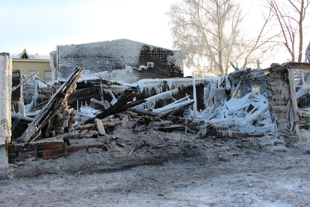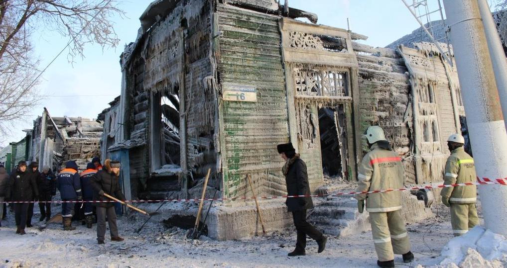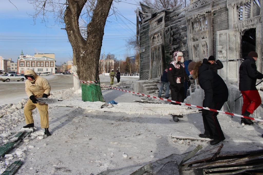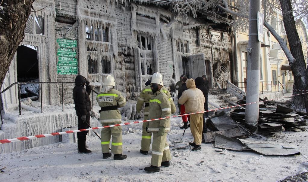 Напоминаем, что в воскресенье, 21 января, пожар уничтожил здание на ул.Ползунова, 31, являющееся памятником архитектуры (бывшее здание конторы купца Морозова). Бригада пожарных осуществляла круглосуточное дежурство на месте, так как существовала угроза появления очагов возгорания.