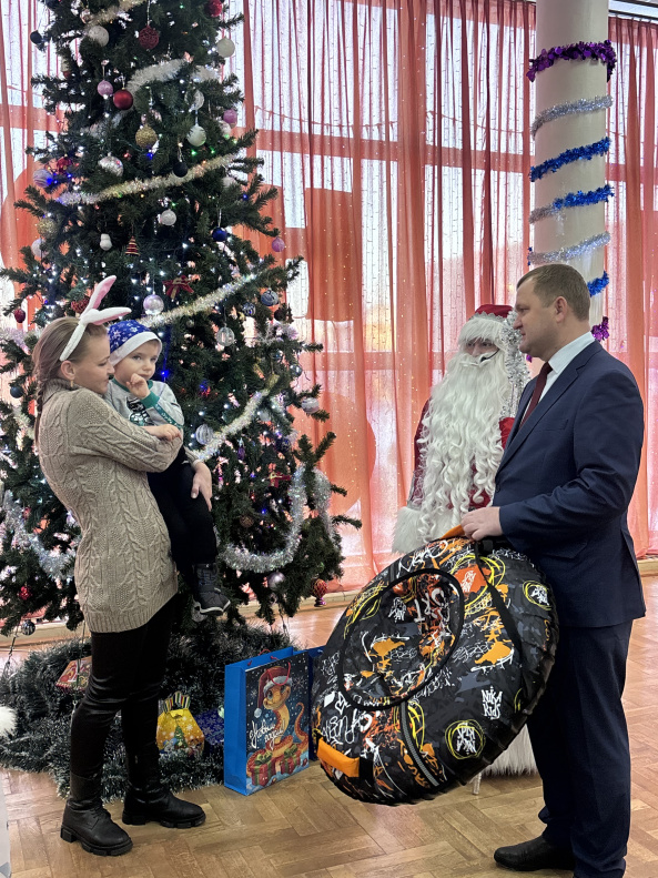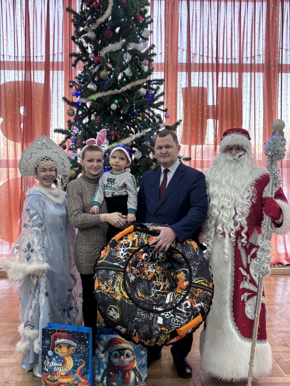 Вместе со сказочными героями – Дедом Морозом и Снегурочкой он вручил мальчику долгожданный подарок – любимые надувные санки.Максим Сабына поздравил семью, пожелал им счастья и благополучия в наступающем году.