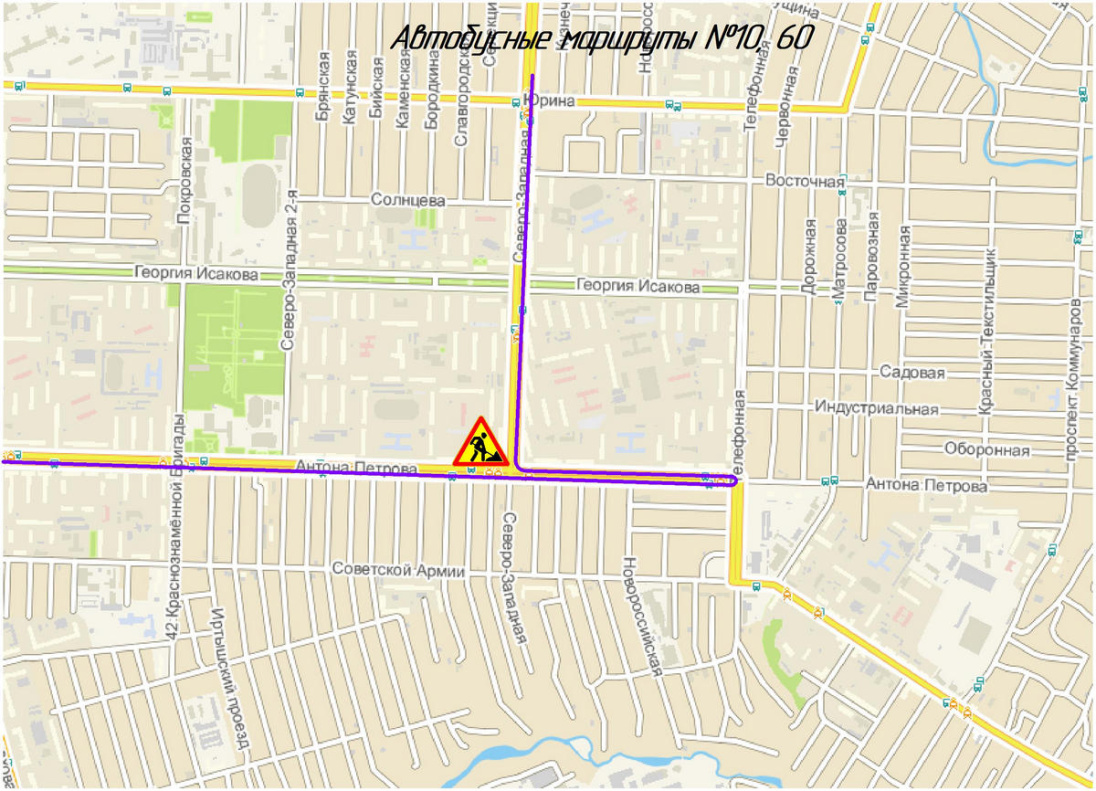 5) схема автобусных маршрутов №10, 60: …ул.Антона Петрова – разворот на пересечении ул.Телефонная с ул.Антона Петрова – ул.Антона Петрова – ул.Северо-Западная, далее по маршруту; в обратном направлении без изменений.