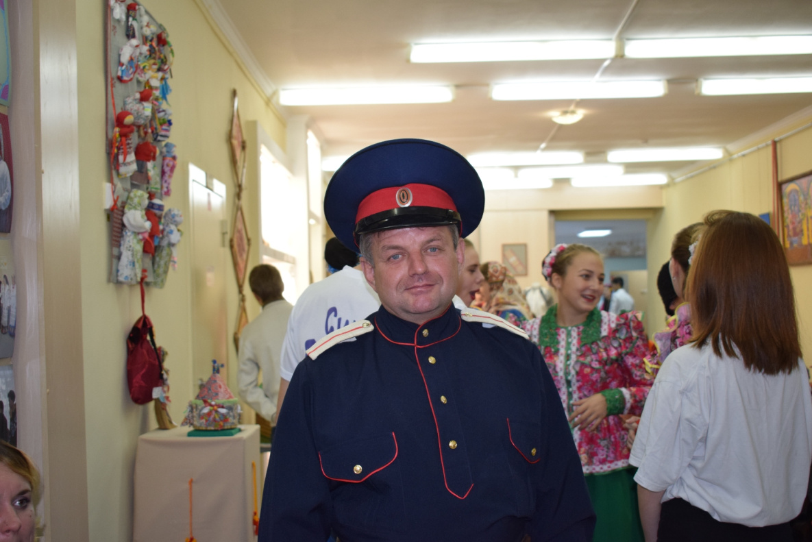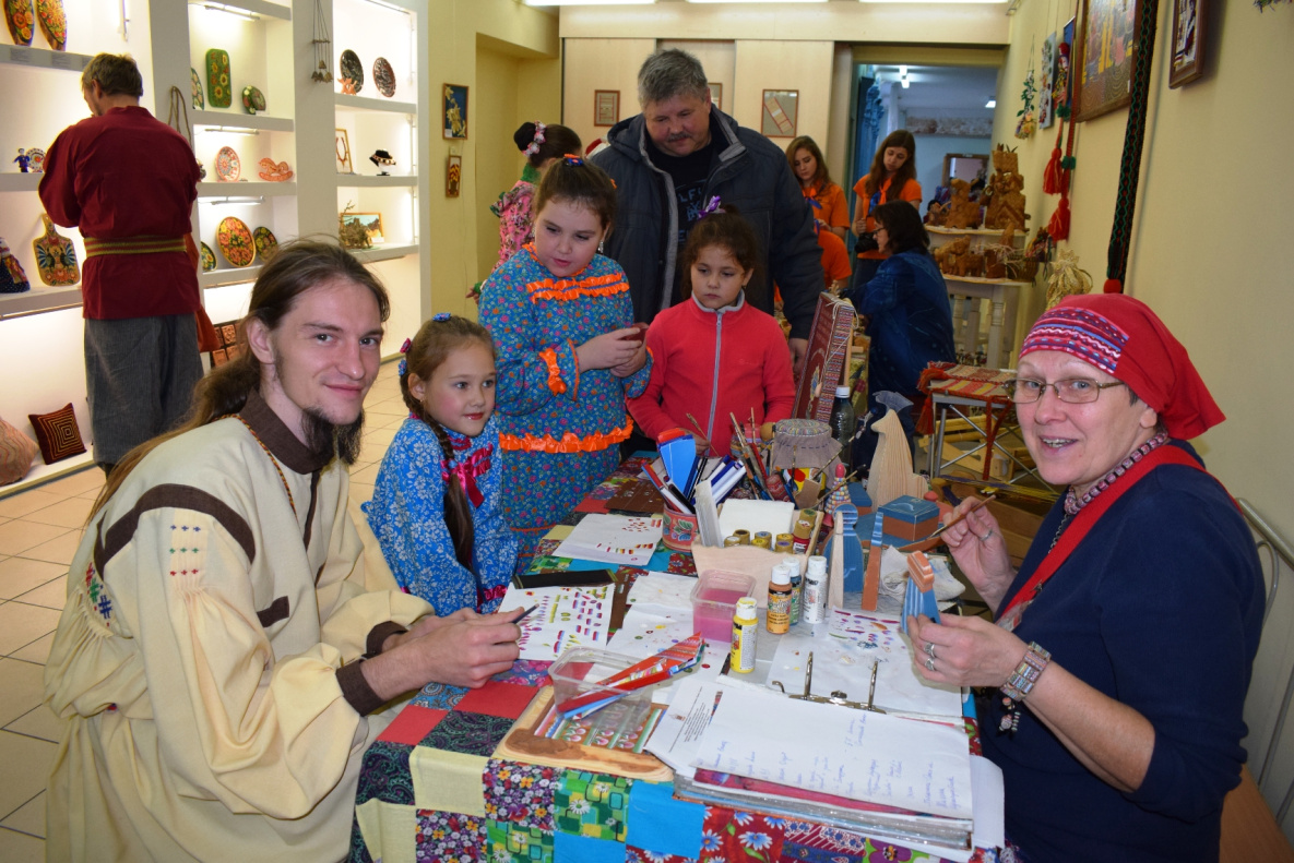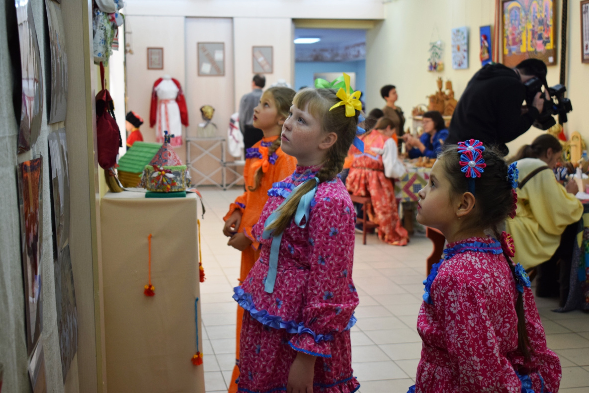 Иерей Константин Алексеев, настоятель храма:В фойе школы искусств расположилась выставка-конкурс от умельцев древних традиций, которые здесь же показывали мастер-классы по созданию поделок из дерева, соломы и других подручных материалов, изображению русских орнаментов и узоров. Также каждый желающий может поиграть на забытых инструментах древних славян.