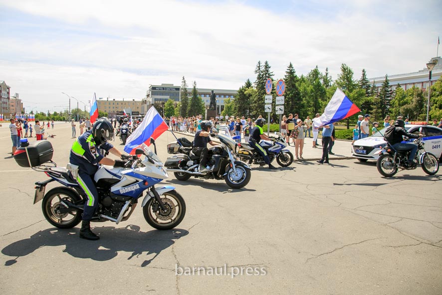 Мотопробег и торжественное построение войск прошли в Барнауле в рамках Дня России