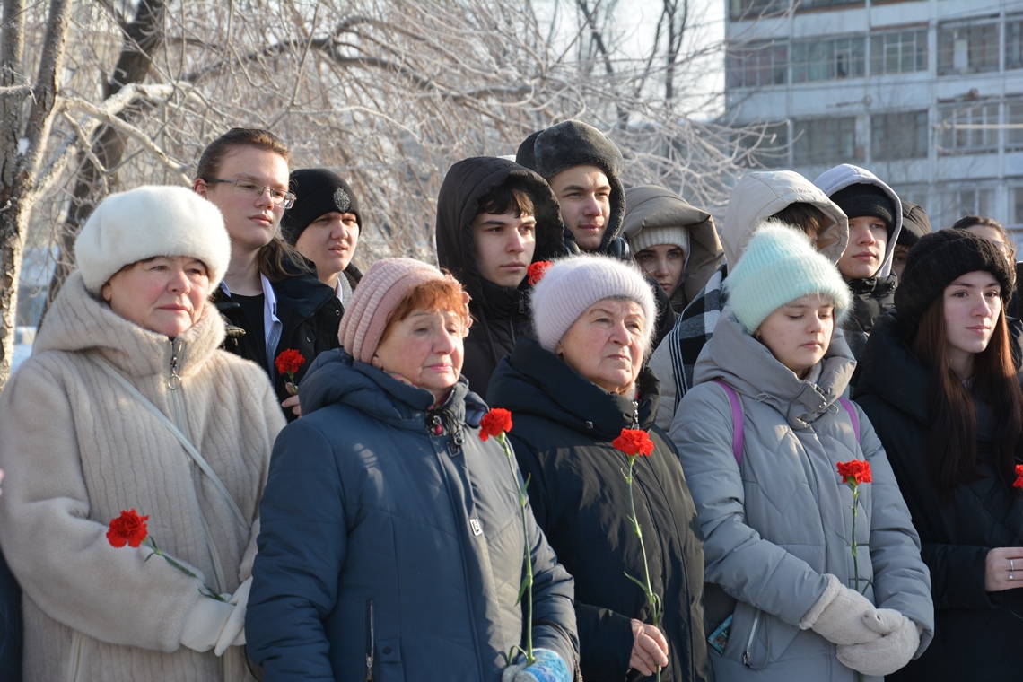 В церемонии возложения приняли участие глава администрации Ленинского района Евгений Авраменко, представители фонда Героя России В.А. Шаманова «Защитники Отечества», автономной некоммерческой организации патриотического воспитания «Патриотический огонь», районных комитета и совета ветеранов, Волонтеры Победы, учащиеся лицея №73.