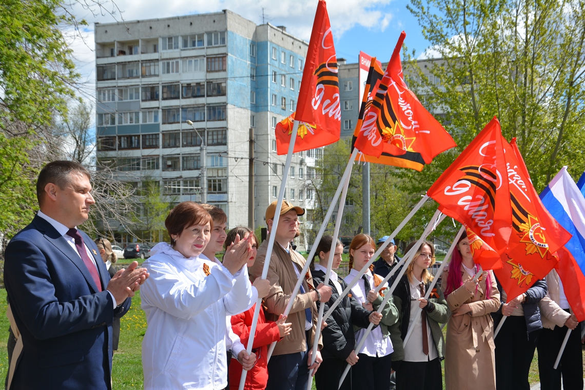 Финальную точку поставила песня «День Победы», а школьники пронесли по Аллее 6-й роты Георгиевскую ленту, как символ Великой Победы.