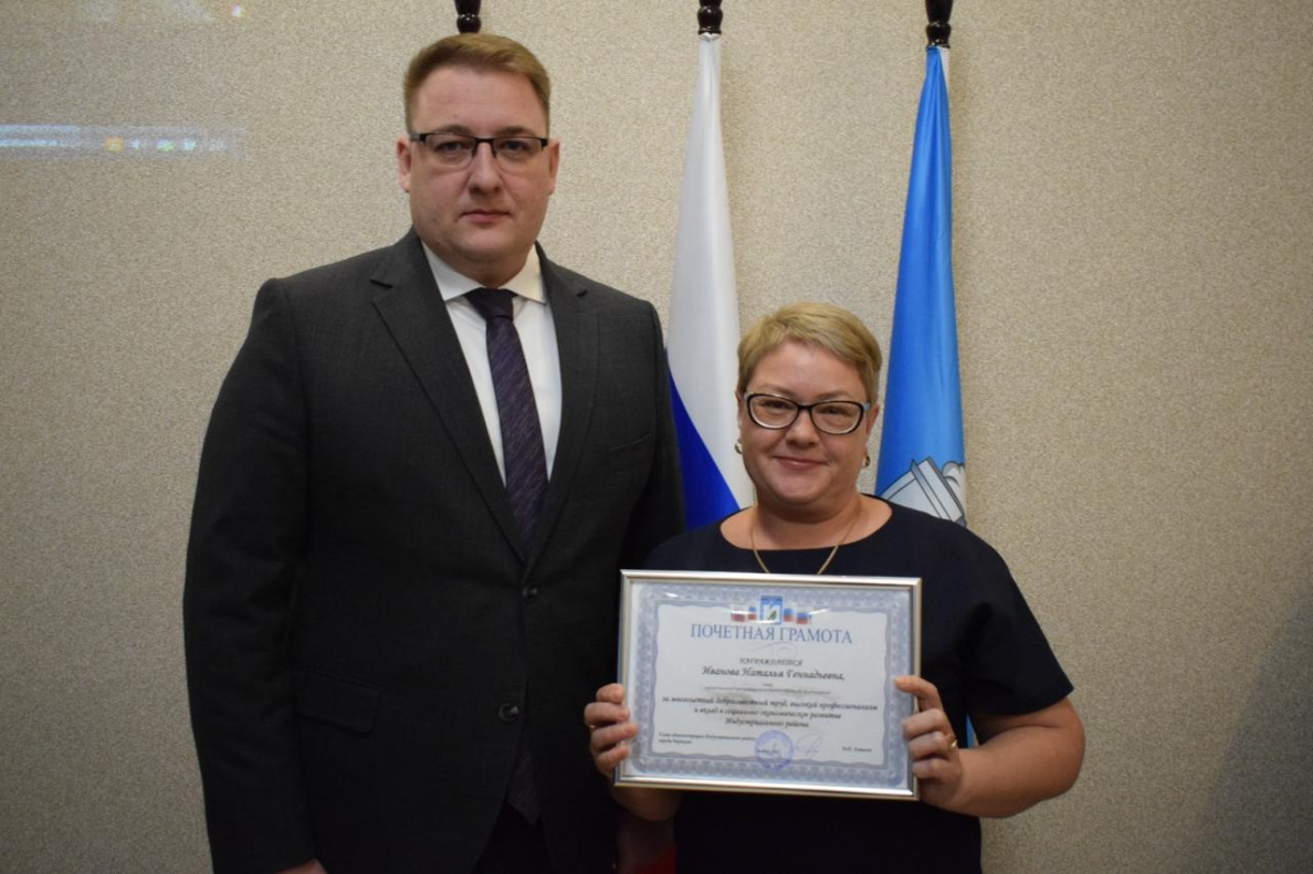 За многолетний добросовестный труд, высокий профессионализм и вклад в социально-экономическое развитие Индустриального района Почетной грамотой администрации Индустриального района награждена Наталья Иванова, повар индивидуального предпринимателя Зориной Т.В.
