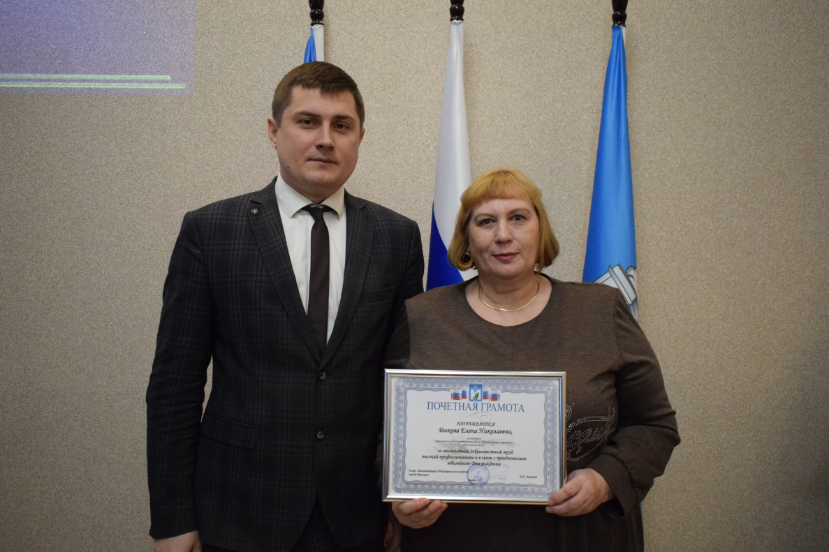 За многолетний добросовестный труд, высокий профессионализм и в связи с празднованием юбилейного Дня рождения Почетной грамотой администрации Индустриального района награждены воспитатель Детского сада №269 Елена Быкова и сторож Детско-юношеского центра Индустриального района г.Барнаула Татьяна Сурду.
