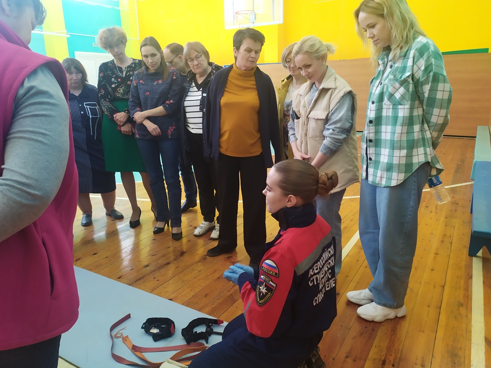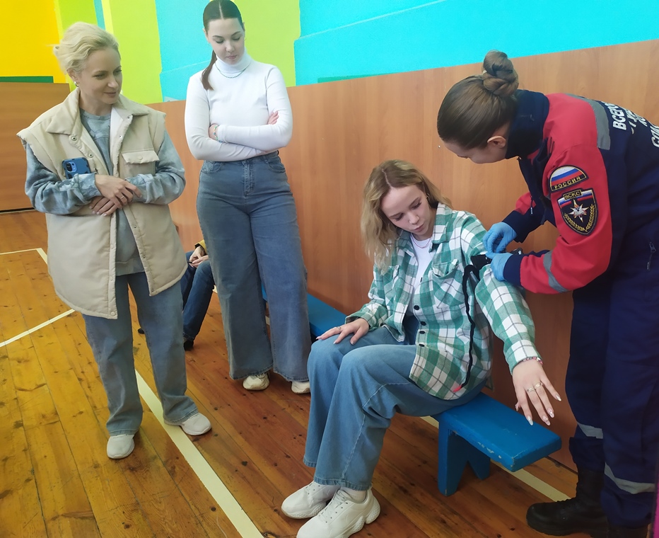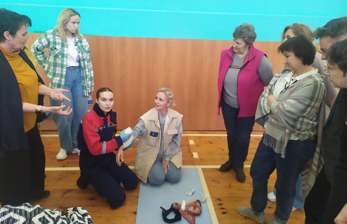 Предварительно начальник формирования прошла курс обучения «Готов к санитарной обороне». Помощь в проведении практических мероприятий инструкторы всероссийского студенческого корпуса спасателей оказали .