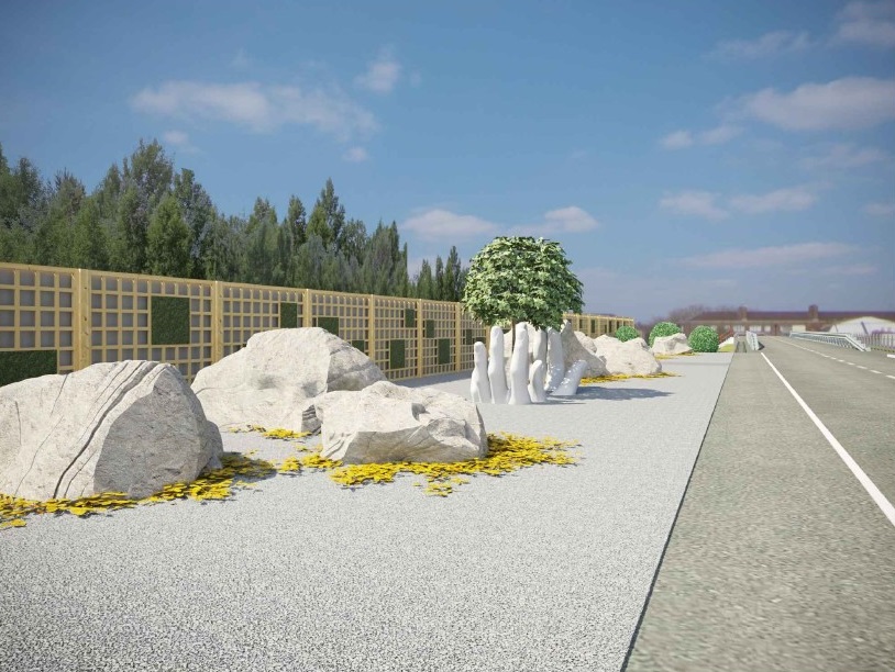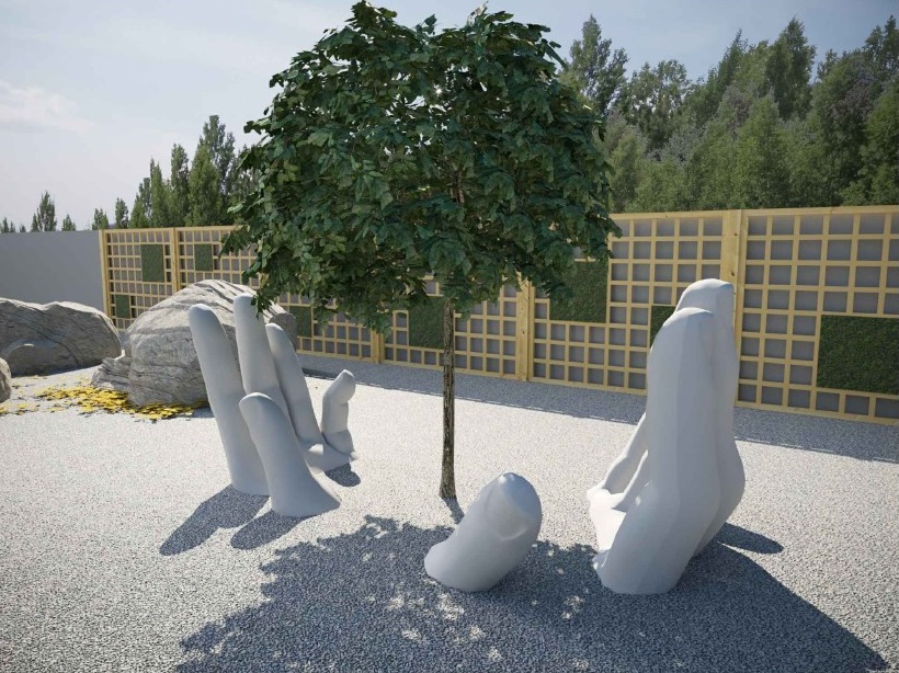 По замыслу разработчиков правая часть ландшафтной композиции будет олицетворять безжизненную землю, о которой не заботится человечество. Находящееся в центре единственное живое дерево символизирует силу заботы человека. Пространство по другую сторону от него показывает, как может выглядеть наша планета, если бережно относиться к ней.