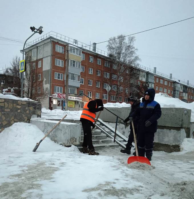 Дворниками управляющих организаций ведется работа по очистке от снега и наледи дворов, посыпке противогололедными материалами предподъездных площадок, осуществляется контроль за отсутствием снежных навесов на козырьках и кровлях жилых домов. В работах задействовано более 200 дворников.