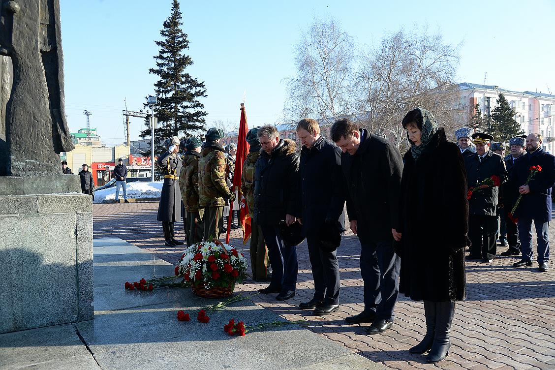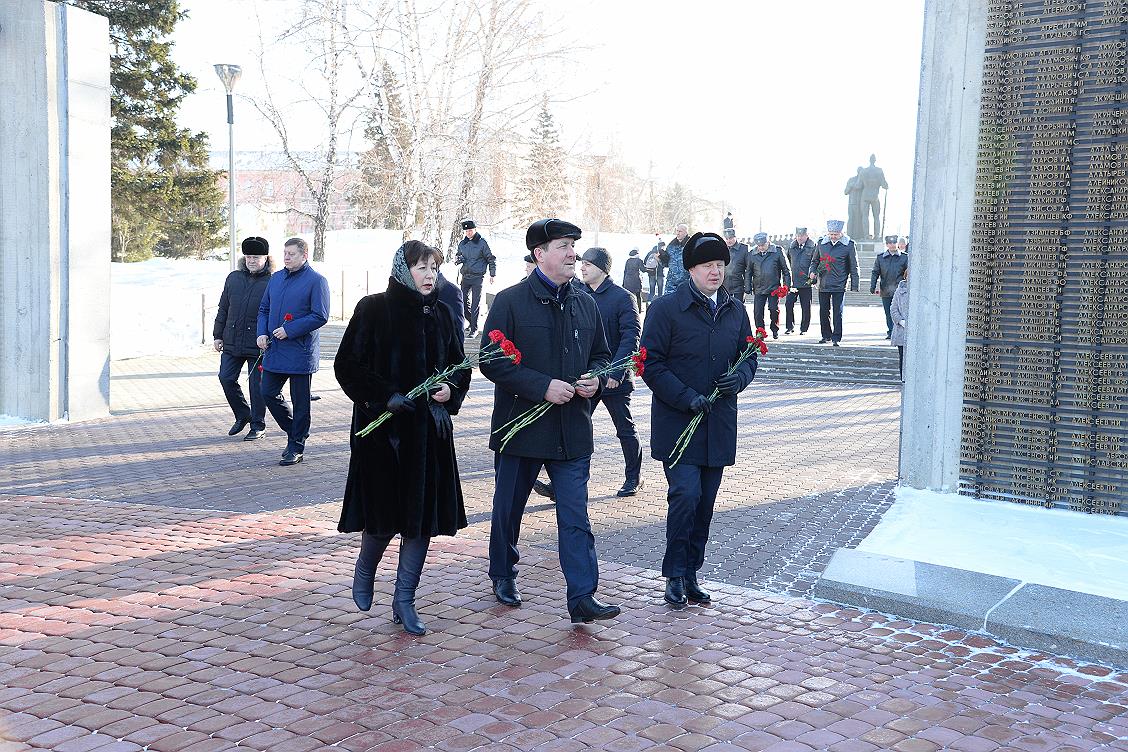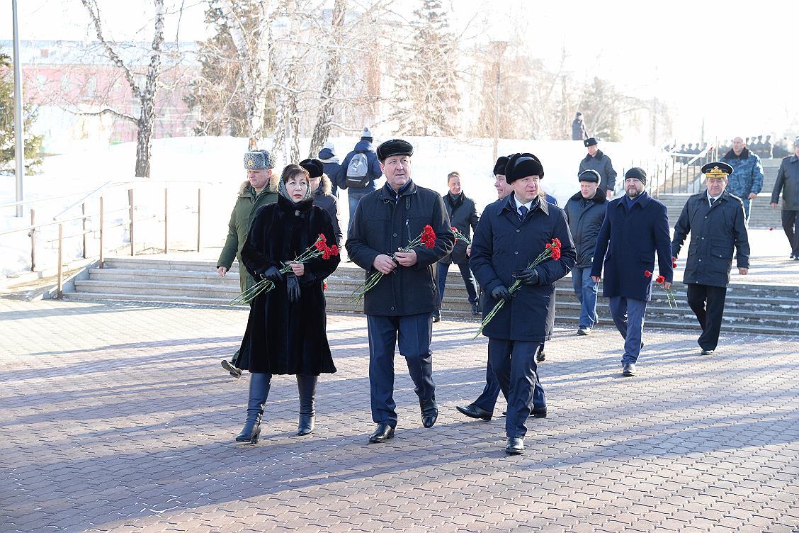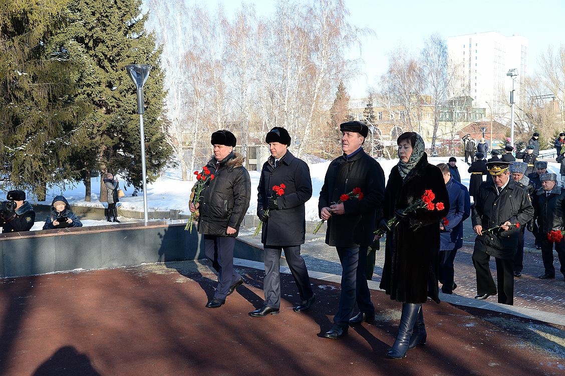 В торжественной церемонии возложения цветов к Мемориалу Славы, монументу «Героям защитникам Отечества - от благодарных потомков в честь 50-летия Великой Победы», приняли участие Губернатор Виктор Томенко, заместитель Председателя Правительства края Денис Губин, председатель Алтайского краевого Законодательного Собрания Александр Романенко, главный федеральный инспектор по Алтайскому краю Юрий Земский, глава администрации Барнаула Сергей Дугин, председатель Барнаульской городской Думы Галина Буевич, представители ветеранских организаций, активисты общественных и военно-патриотических объединений.