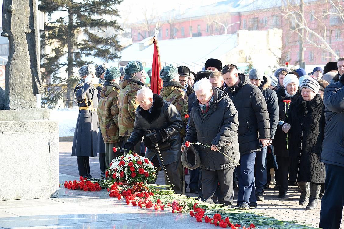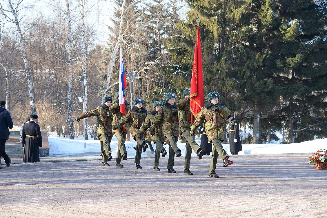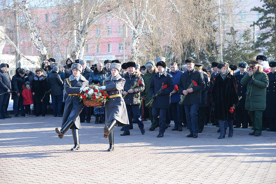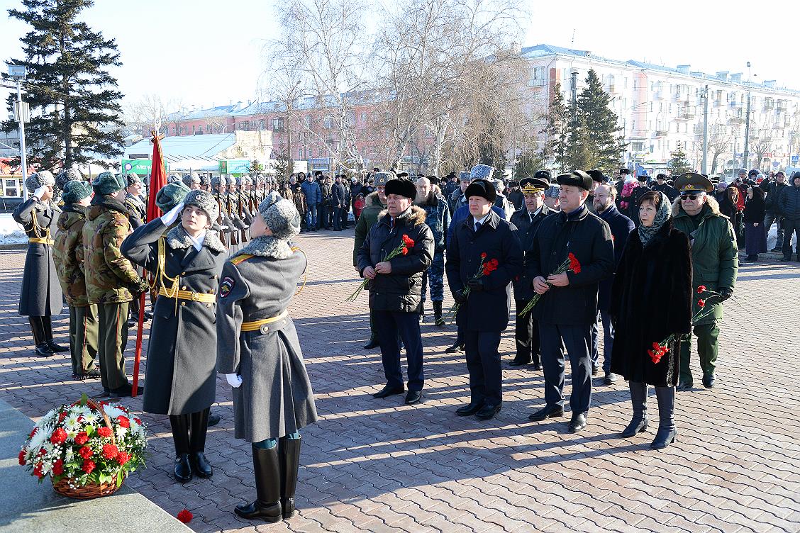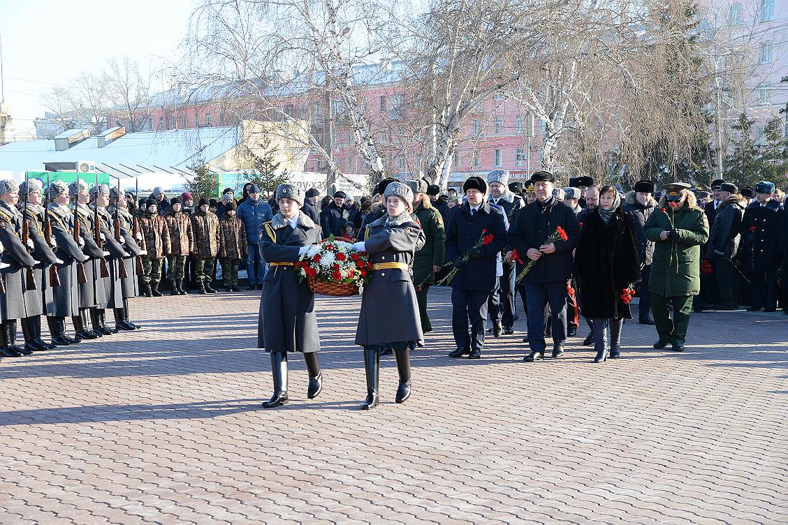 В торжественной церемонии возложения цветов к Мемориалу Славы, монументу «Героям защитникам Отечества - от благодарных потомков в честь 50-летия Великой Победы», приняли участие Губернатор Виктор Томенко, заместитель Председателя Правительства края Денис Губин, председатель Алтайского краевого Законодательного Собрания Александр Романенко, главный федеральный инспектор по Алтайскому краю Юрий Земский, глава администрации Барнаула Сергей Дугин, председатель Барнаульской городской Думы Галина Буевич, представители ветеранских организаций, активисты общественных и военно-патриотических объединений.
