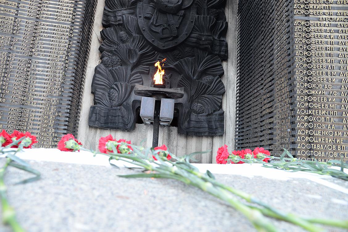 Память воинов, павших защищая родную землю, также почтили сотни жителей и гостей города - представители разных поколений. Люди несут цветы с самого утра, отдавая дань подвигу солдат и офицеров, чьи имена увековечены на Мемориале Славы, а также безвестных героев.