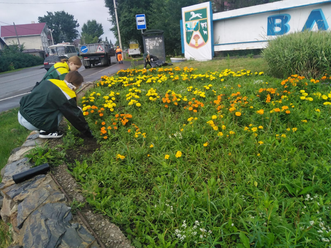 Силами экологического отряда «Зеленый феникс» проводятся работы по прополке клумб, альпийской горки, расположенных на пересечении улиц Мамонтова и Сосновой.